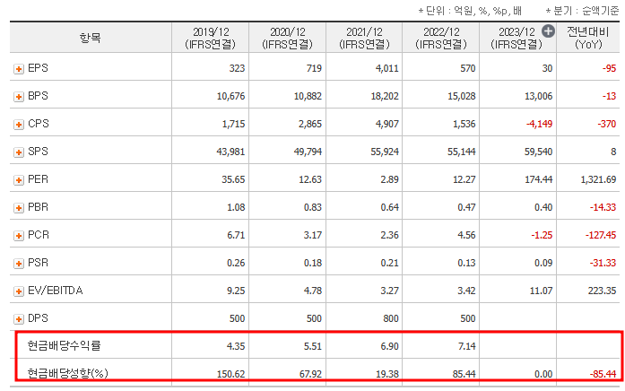 배당을 기대하는 투자자에게는 매력도가 낮은 종목입니다.