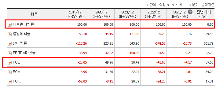 - PER(주가수익비율): -20.20배 (2023년 기준, 적자 상황)