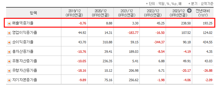 2023년 매출은 전년 대비 급등했지만, 영업이익과 순이익은 적자를 기록하며 수익성 개선이 필요한 상황입니다.
