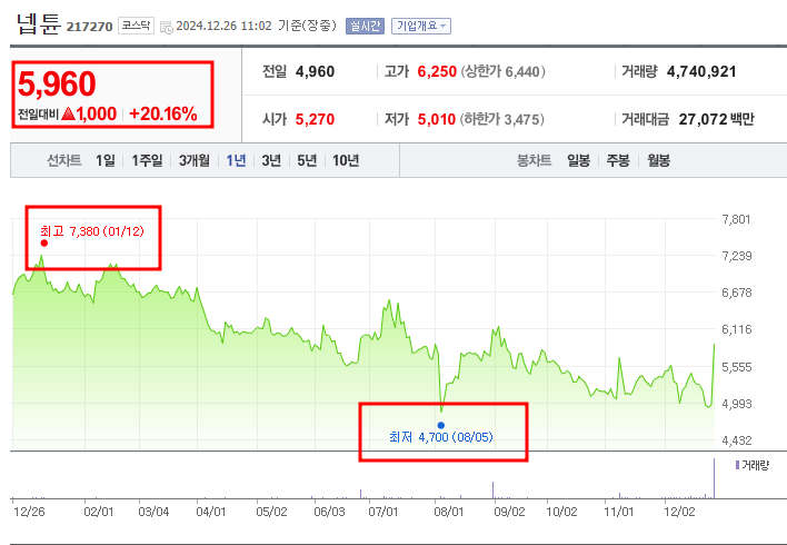 - 52주 최고가: 7,380원 (2024년 1월 12일)