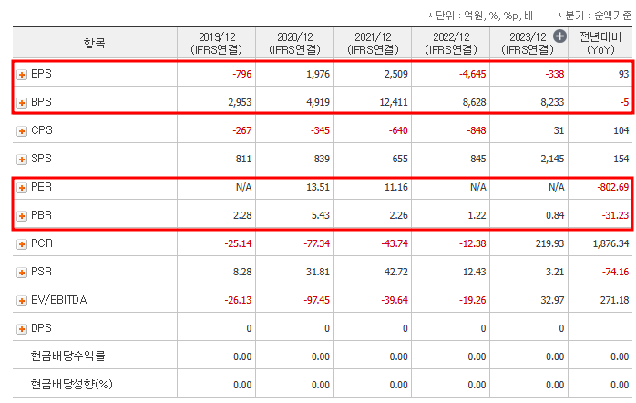 - PBR(주가순자산비율): 0.84배