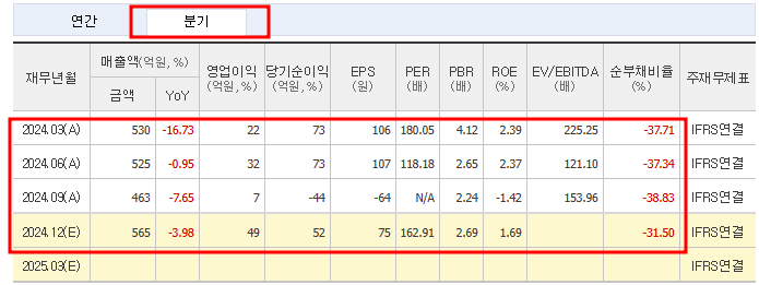 - 2024년 4분기 예상: 매출 565억 원, 영업이익 49억 원