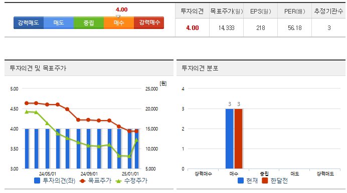 - 목표주가: 14,333원(투자의견 4.00 매수)
