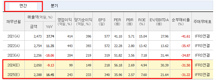 - 2023년 319원 → 2024년 예상 218원 (수익성 하락)
