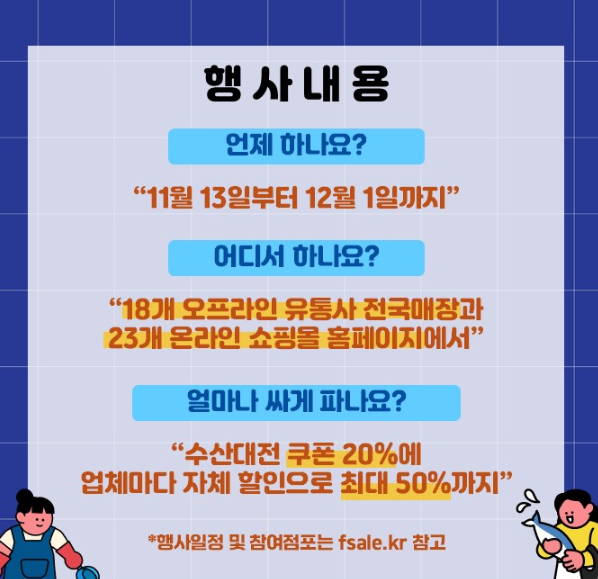 - 정부 할인 20% + 유통업체 자체 할인 20% = 최대 40% 할인
