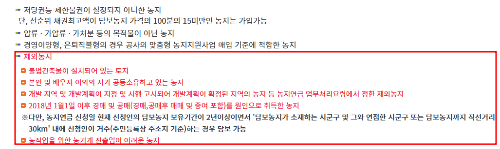 - 담보나 가압류가 설정된 농지: 이미 담보로 설정된 농지는 추가 담보 제공이 불가능하므로 연금 대상에서 제외됩니다.