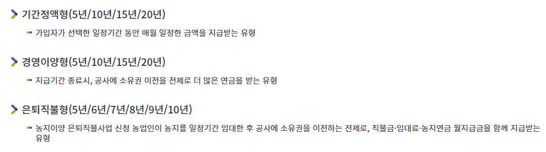 - 경영이양형: 가장 높은 월수령액을 제공하며, 농지의 경영권 이양이 필요