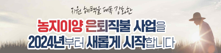 - 농지이양 은퇴직불금(1ha당 월 40만 원).