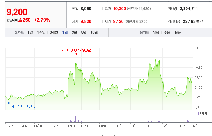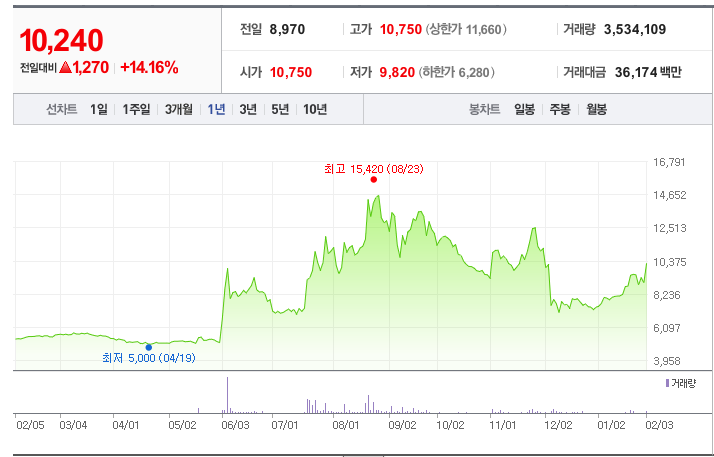 - 52주최고가/최저가: 15,420원/5,000원