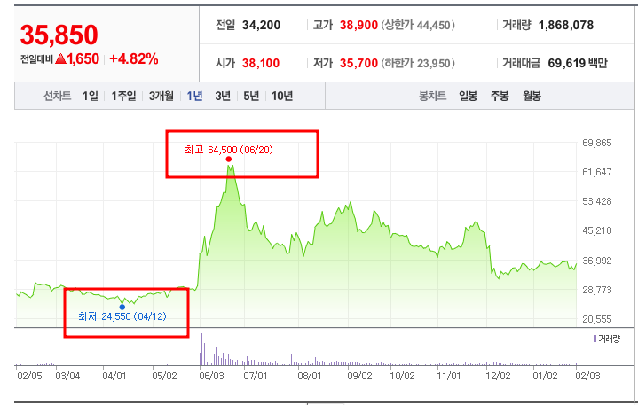 - 52주최고가/최저가: 64,500원/24,550원
