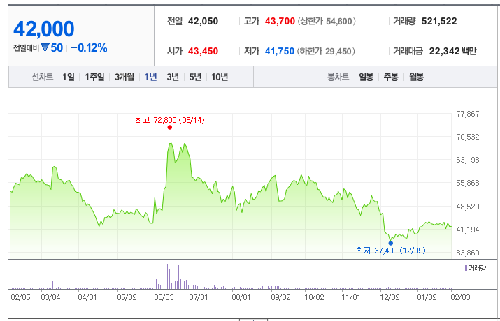 - 52주최고가/최저가: 72,800원/37,400원
