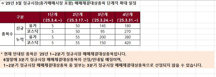 이후 3주 차부터 110개, 4주 차에는 350개, 5주 차 이후에는 800개 이상의 종목으로 계속 늘어났고, 이를 통해 삼성전자와 SK하이닉스 등 대형주도 순차적으로 거래 대상에 포함되었습니다.