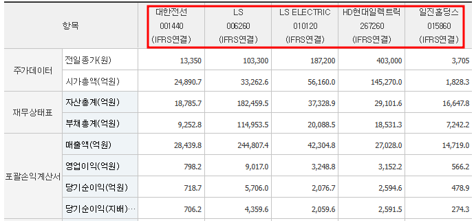 2. 대한전선 주요 투자 지표