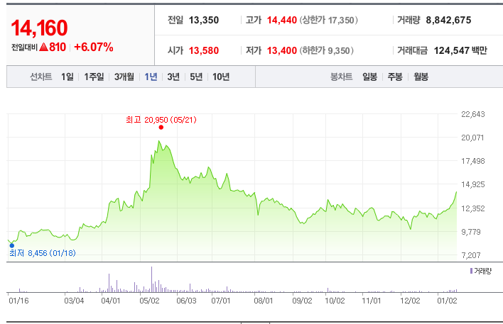 - 52주 최저가: 8,456원 (2024년 1월 18일)