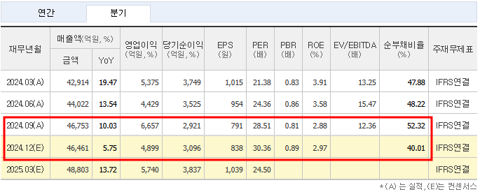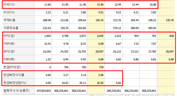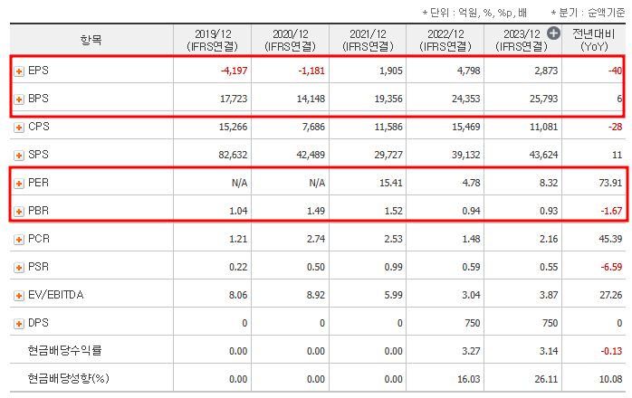 - PBR (주가순자산비율): 0.93배