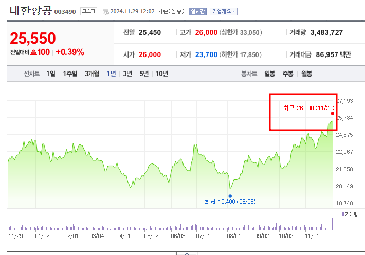 - 최근 최고가: 26,000원 (11월 29일)