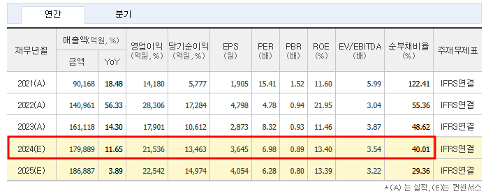 - 매출액: 2024년 예상치 17조 9,889억 원