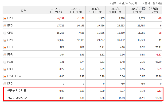 투자 지표 분석-대한항공 배당금
