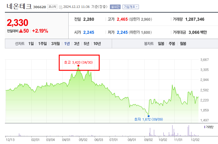 - 52주 최고가/최저가: 3,420원/1,101원