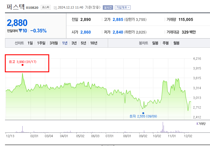 - 52주 최고가/최저가: 3,990원/2,555원