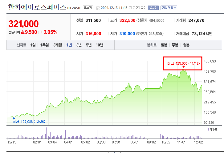 - 52주 최고가/최저가: 425,000원/127,033원