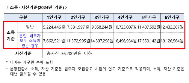 - 소득: 전년도 도시근로자 월평균 소득의 130% 이하 (맞벌이는 200% 이하)