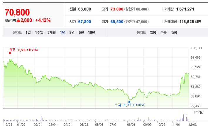 • 52주 최고가: 96,500원 (2023년 12월 14일)