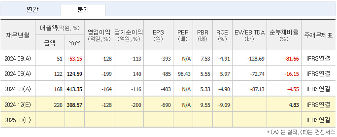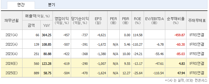 • PER: 데이터 없음(2024년 9월 기준 적자 기업)