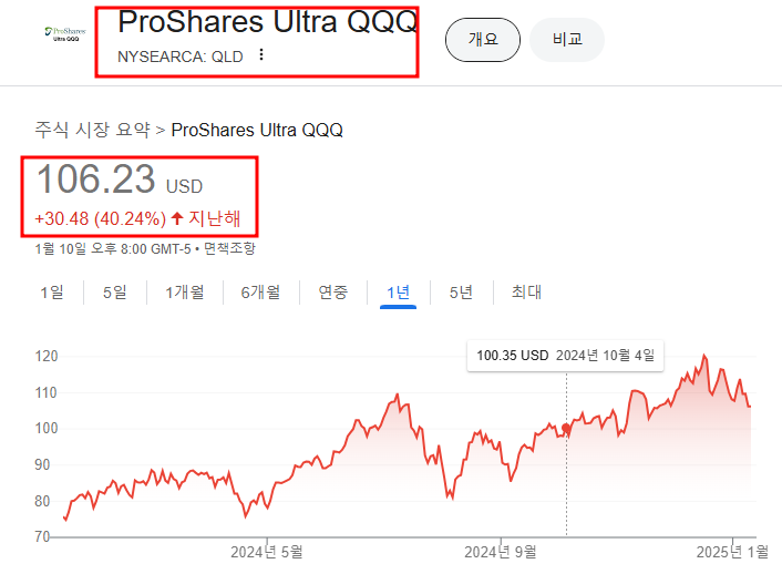 - 나스닥 100 지수의 2배 수익률 추종, 고위험 고수익 상품.