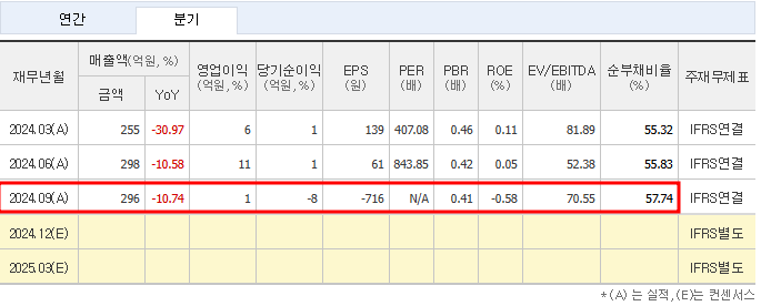 - 4분기(예상): 매출 296억 원, 영업이익 11억 원