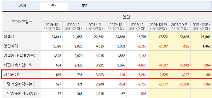 • 배당수익률: 2023년 배당 없음(2022년 1.24%)