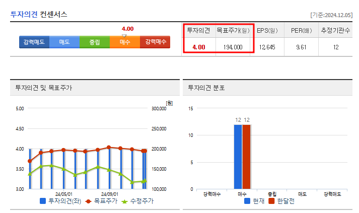 - 목표 주가: 194,000원으로, 현재 주가 대비 약 60% 상승 여력이 있습니다.