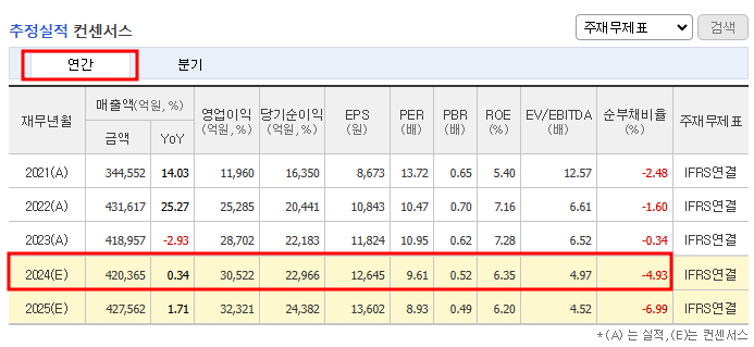 - 2024년(E) 매출: 420,365억 원, 영업이익률 7.26% 전망