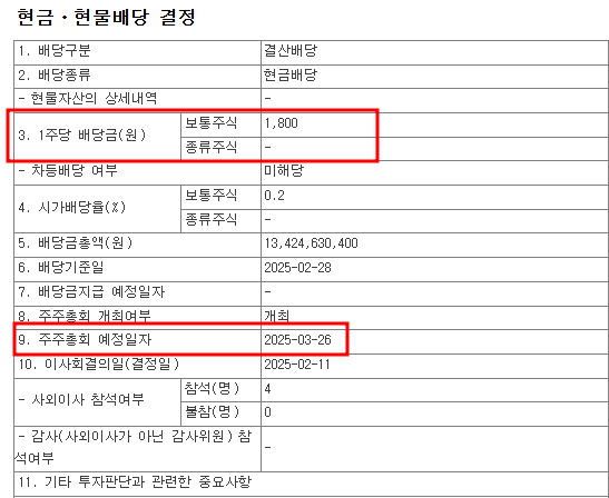 | 1주당 배당금(원) | 1,800원 (보통주 기준) |