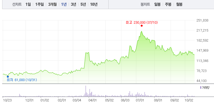 • 52주 최고/최저가: 230,000원 / 61,000원