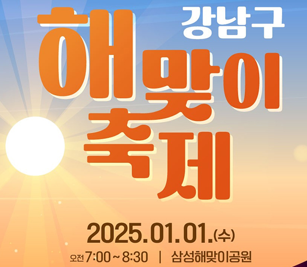 강남구 삼성해맞이 공원에서도 2025 새해 해맞이 행사가 열립니다. 해맞이 퍼포먼스와 공연, 소원지 쓰기, 떡국 나눔 등의 행사가 열립니다.