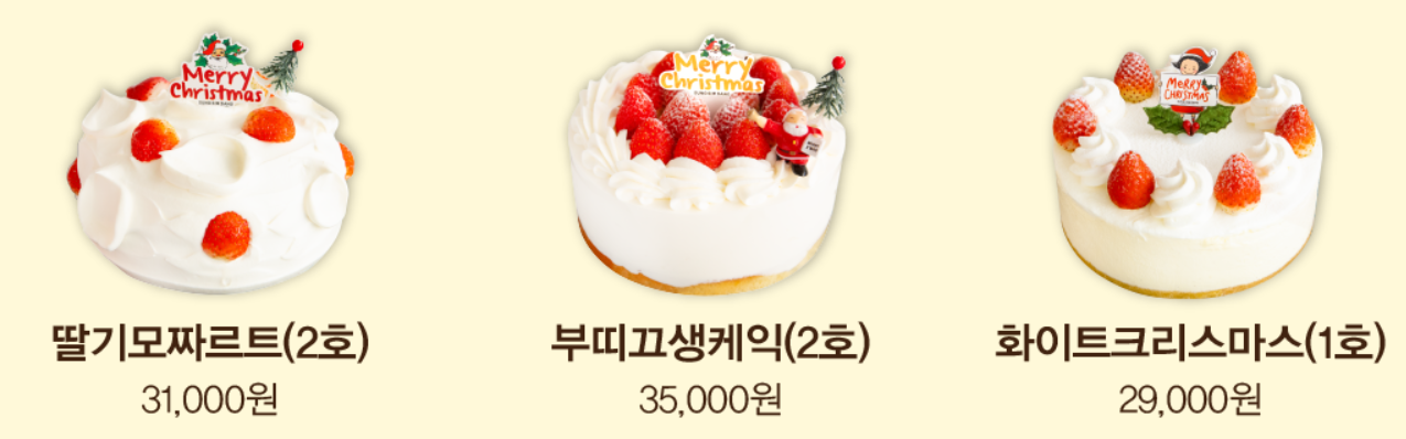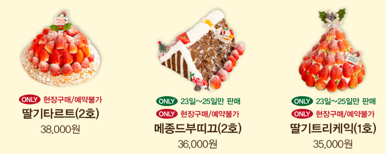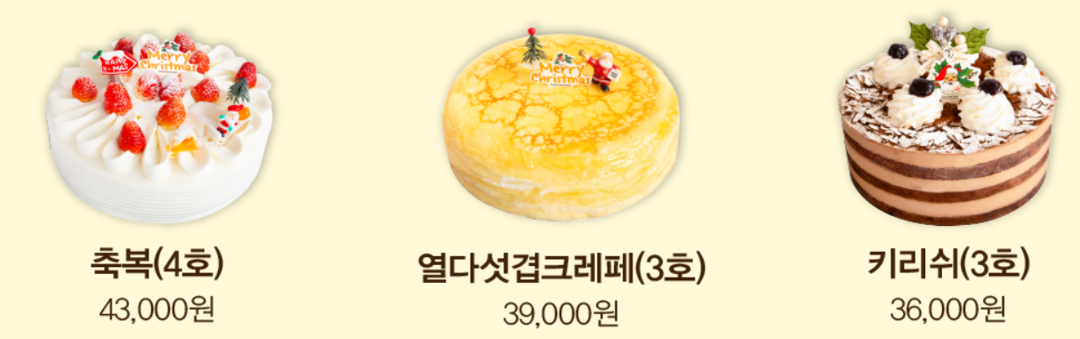 올해 준비된 크리스마스 케이크 라인업입니다: