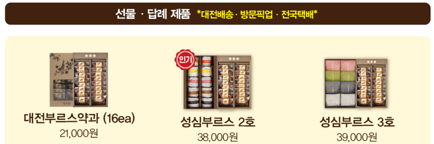 케이크는 택배 배송이 불가능하지만, 다음 제품들은 전국 어디서나 받아보실 수 있습니다: