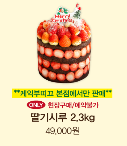 - 딸기시루 2.3kg: 49,000원 (케익부띠끄 본점 전용)