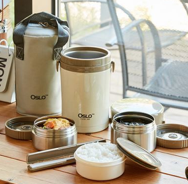 먼저, 쌀쌀한 날씨에 대비할 수 있는 보온도시락과 보온물병입니다. 점심시간에 도시락을 먹기 때문에 따뜻한 도시락을 담을 수 있는 보온도시락과 보온 텀블러가 아주 유용합니다.