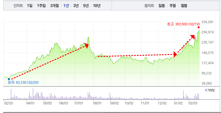 - 투자의견/목표주가:4.00매수/288,500원(신한투자증권, 신영증권 외 14개 증권사 평균)