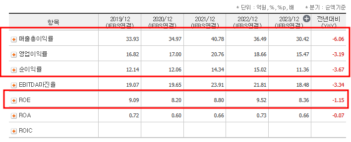 매출과 영업이익의 안정적 성장에도 불구하고, 순이익률은 전년도 대비 하락하며 금융시장 불확실성이 실적에 일부 영향을 미쳤습니다.