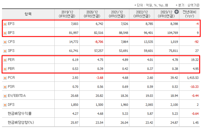 PER, PBR 및 배당