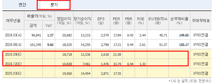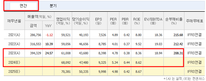 - 2024년(E) 매출: 394,329억 원, 영업이익률 17.26% 예상.