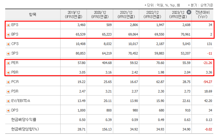 • EPS(주당순이익): 2024년 예상 EPS는 9,999원으로, 전년 대비 성장 가능성을 보이고 있습니다.