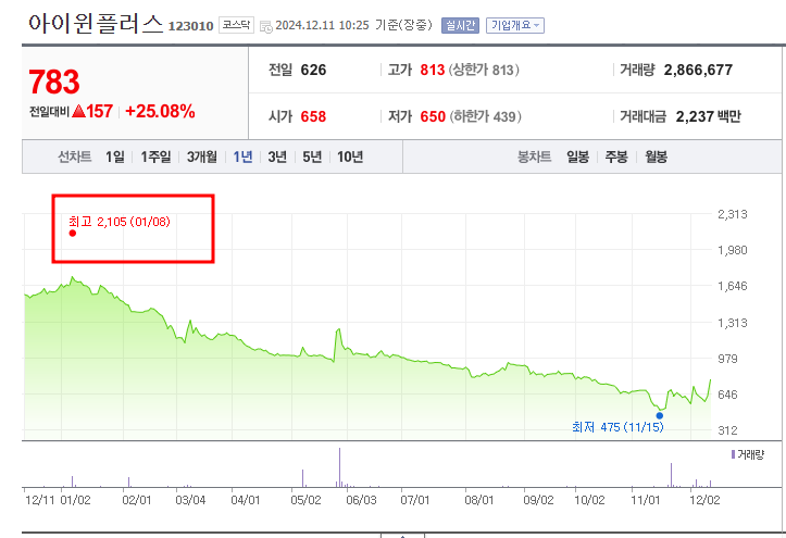아이윈플러스는 포토센서용 CSP 전문회사로 이미지센서 패키징 분야에서 특허기술을 가지고 2003년에 설립되었습니다. 다양한 로봇 솔루션 및 자동화 시스템을 보유하고 이 기술을 제조업과 다른 산업 분야로 확대하고 있습니다. 금일 아이윈플러스는 25.08% 오른 상태로 거래되고 있습니다. 주요 투자지표는 아래와 같습니다.