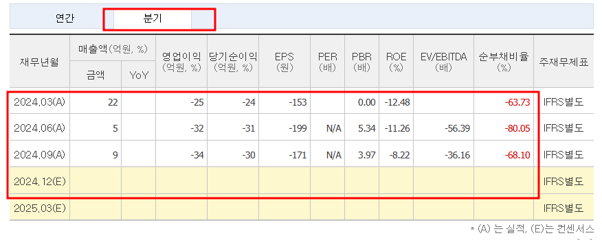 - 4분기 예상 매출액: 9억 원