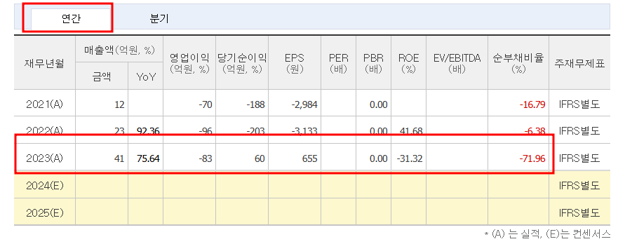 - 2023년 매출액: 41억 원 (+78% YoY)