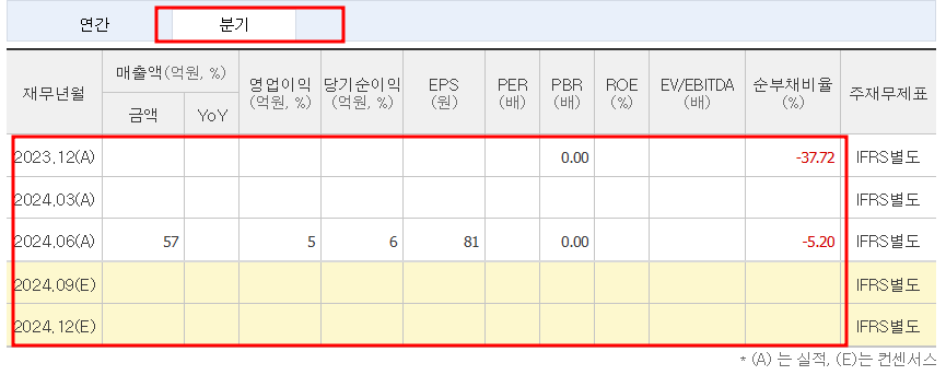 - 1분기 매출액: 57억 원