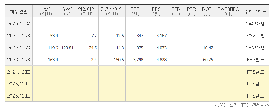 - 2023년 매출액: 163억 원 (+36% YoY)